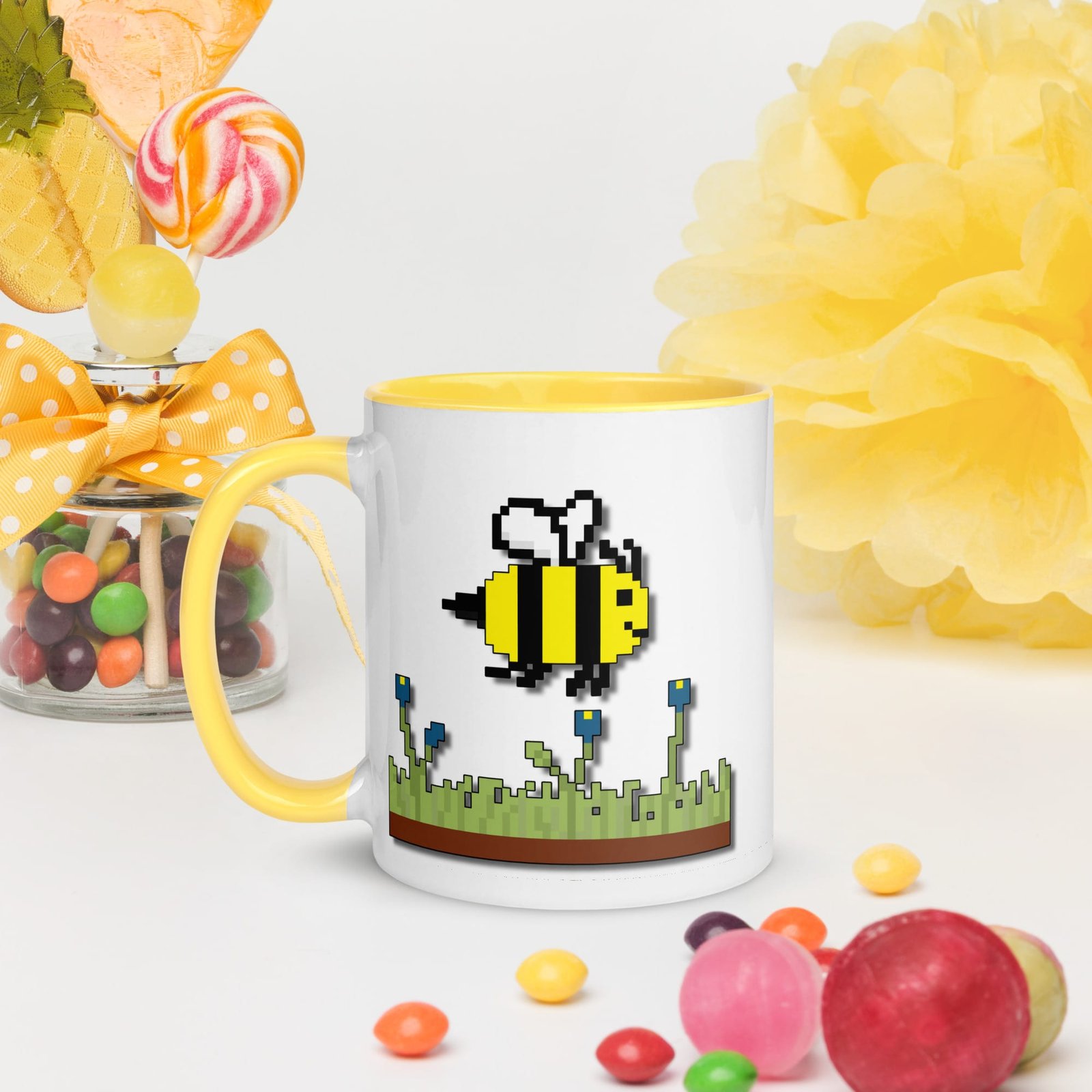 The Yellow Bee Mug is made from sturdy ceramic with a glossy finish, designed to last and bring a little joy to your daily routine.